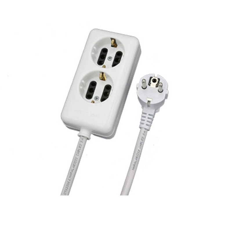 Πολύμπριζο Λευκό 2 Θέσεων Σούκο χωρίς Διακόπτη με Καλώδιο 1,5m 3G1mm²