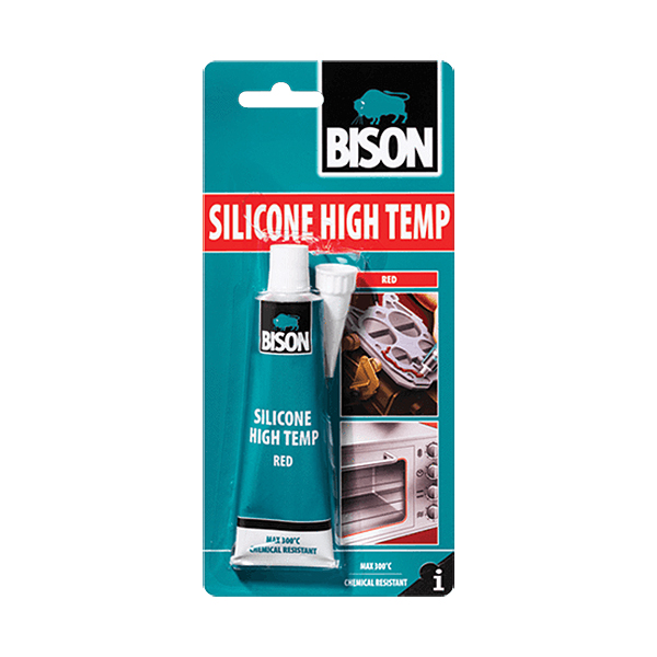 Σιλικόνη Bison Silicone Hight Temperature 60ml, στεγανοποιητική ανθεκτική στη θερμότητα, σε κόκκινη απόχρωση.
